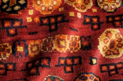 Bidjar is a small city in the heart of the Persian province of Kurdistan at about 200 km from Hamadan. The carpet production extends towards neighboring villages. Even though one of the features of knotting on a woolen warp is the fluffy feeling, these Bidjars are heavy and hardwearing. This is because while knotting these carpets, the weavers constantly beat the row of knots with a heavy metal comb.