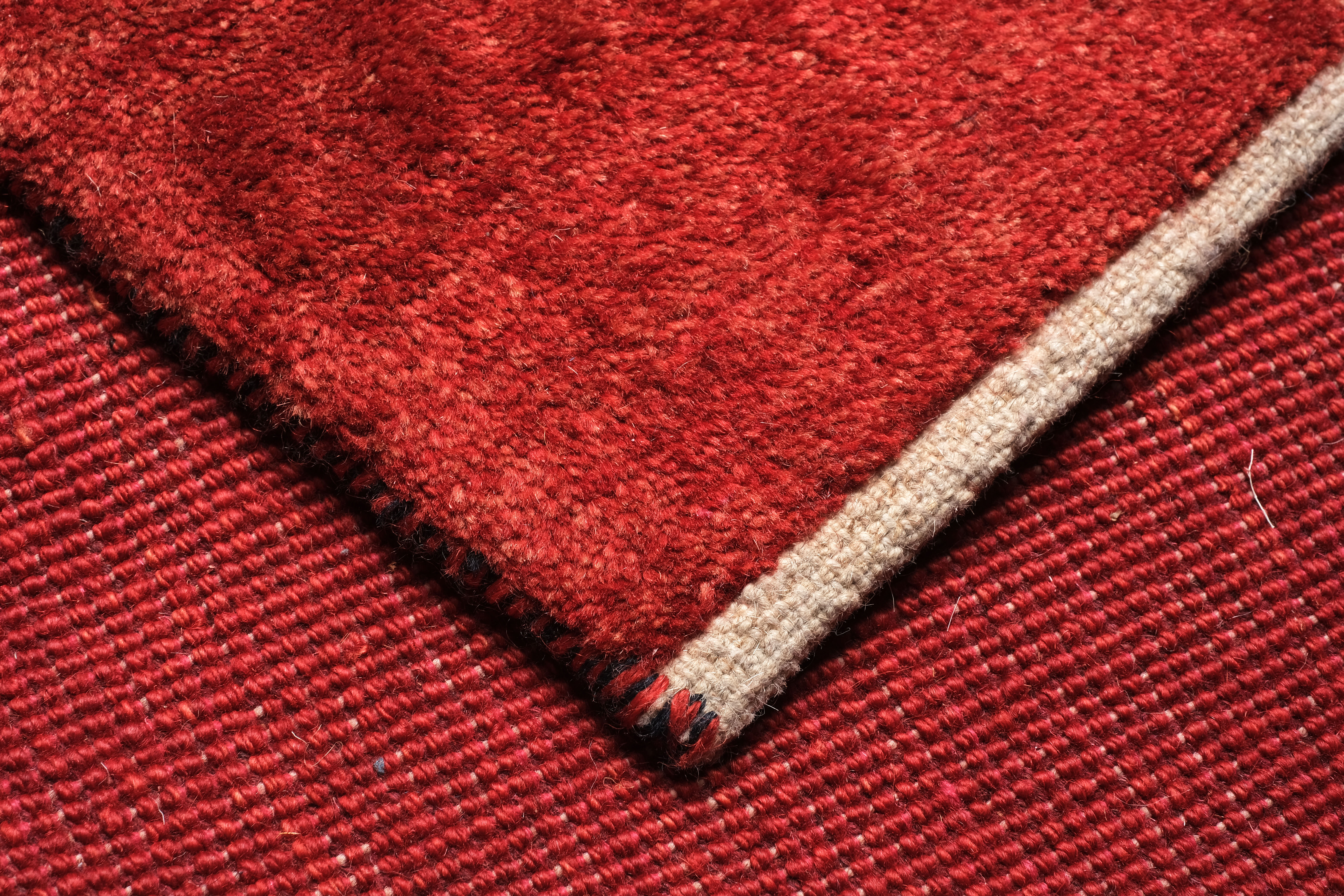In Iran gabbeh is the common name for coarse and longhaired carpets. It does not refer to a specific region, although the best known come from the area of Shiraz and the Zagros Mountains. Some will be found among other Iranian tribes and villages. Until the third quarter of the 20th century, the rugs were produced in small sizes for personal use. But, on request of local dealers, the villagers started to make similar qualities and designs in much larger sizes. In a short while it became almost a trendy item and many weavers from the Shiraz area started making gabbeh rugs up to any size. The knots are very coarse, the designs rather abstract or just plain with very simple motives at random.