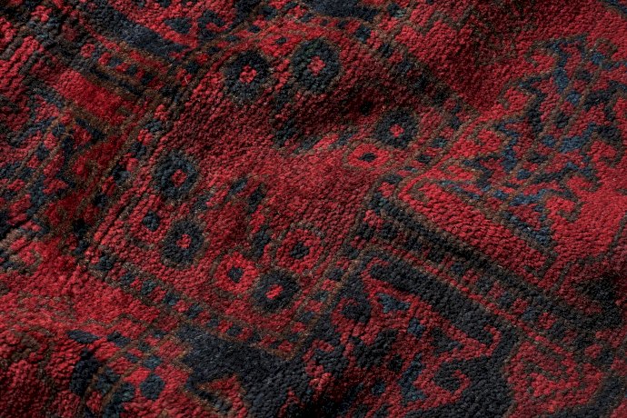 Jusqu’au troisième quart du 20ème siècle, la production de tapis provenant d’Afghanistan proposait de subtiles variations sur un même thème : divers tons de rouges formaient la palette des couleurs de base avec des dessins octogonaux en lignes noires. Au fil des ans, ces teintes, à conditions de provenir de colorants naturels, se muaient en tons de rouille, de brun ou de terre-cuite.