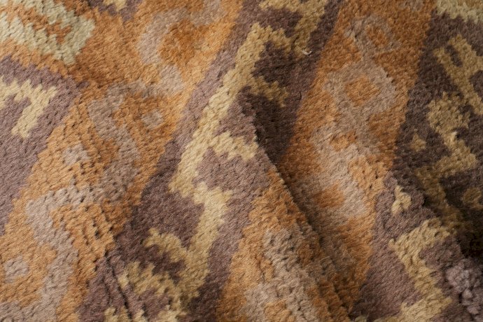 Handgeknoopt tapijt naar een ontwerp van Paul Haesaerts uitgevoerd in ateliers De Saedeleer. Op de achterkant zijn de nummering 1/6 en het monogram dS aangebracht met een kruissteek.