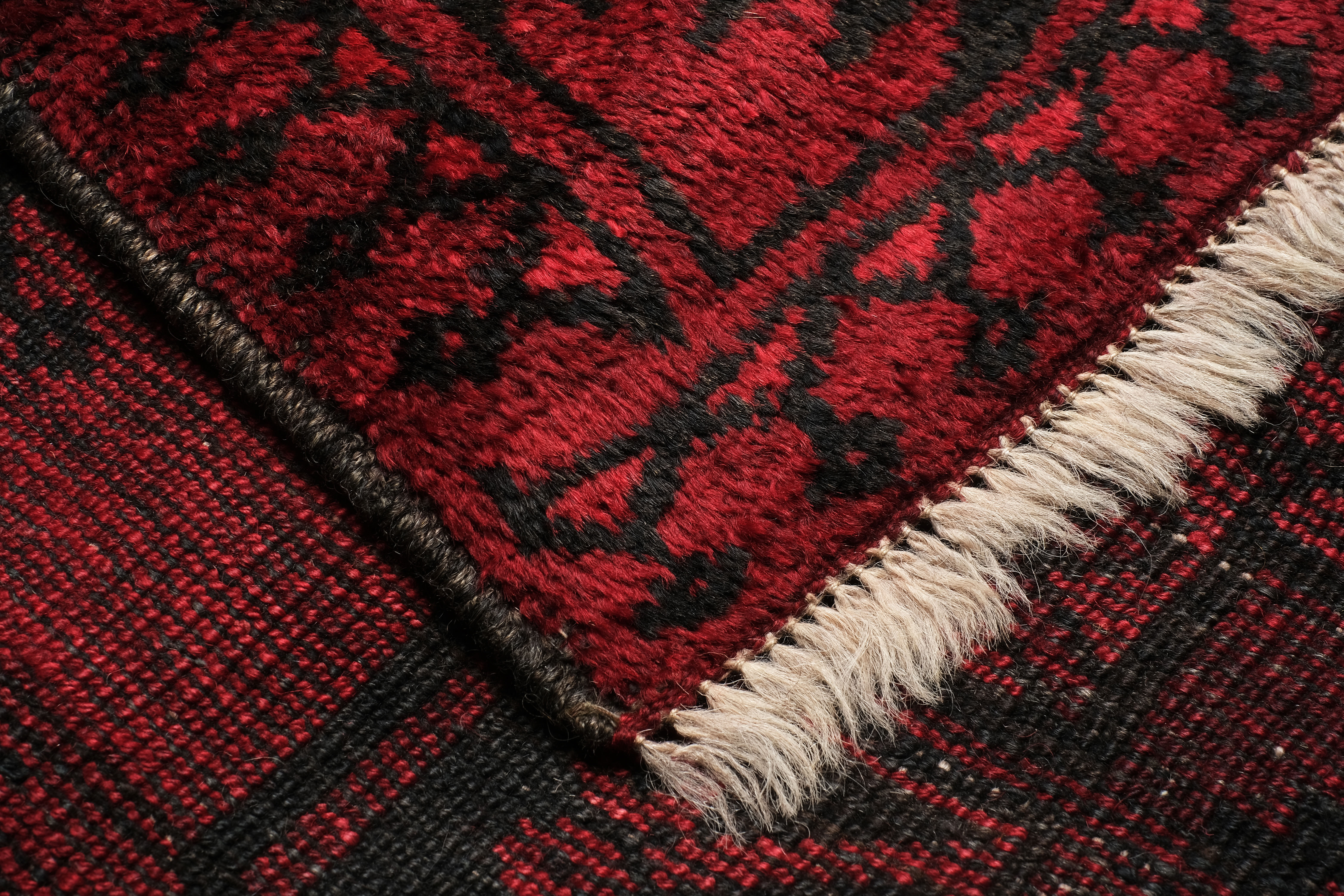 De tapijten uit Afghanistan waren oorspronkelijk overwegend variaties op eenzelfde thema van tal van rode schakeringen met voornamelijk zwarte motieven. Deze kleuren (in zo ver natuurlijke kleurstoffen werden gebruikt) veranderden stilaan in roestbruin en warme terracotta. De motieven waren zeer sober en toch aantrekkelijk voor wie een oog had voor tapijtknoopkunst.