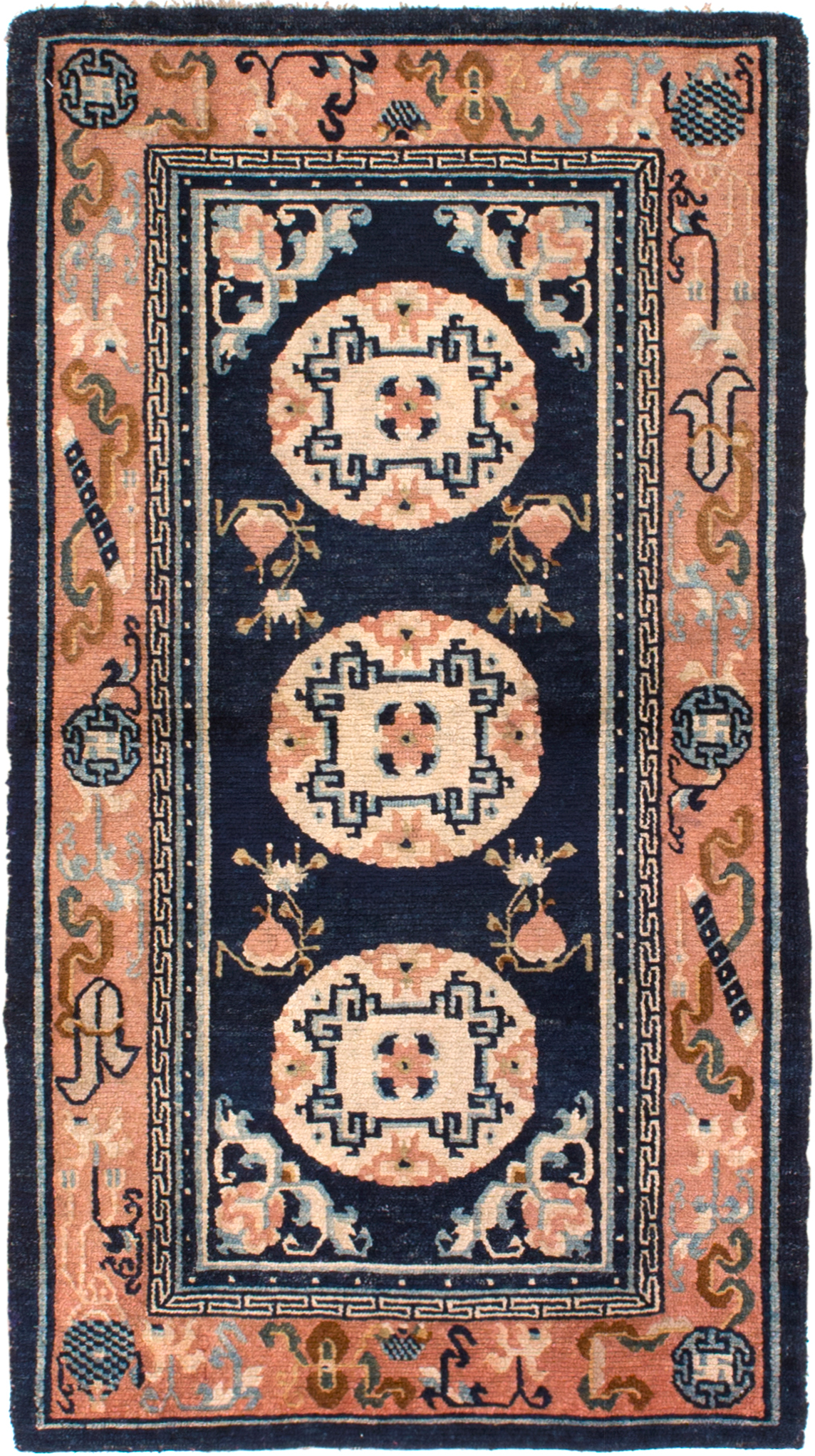 Next came the long, narrow column carpets that were placed around the pillars of temples. They usually depicted a dragon and were designed to create the illusion of a dragon wrapping itself around the column.
