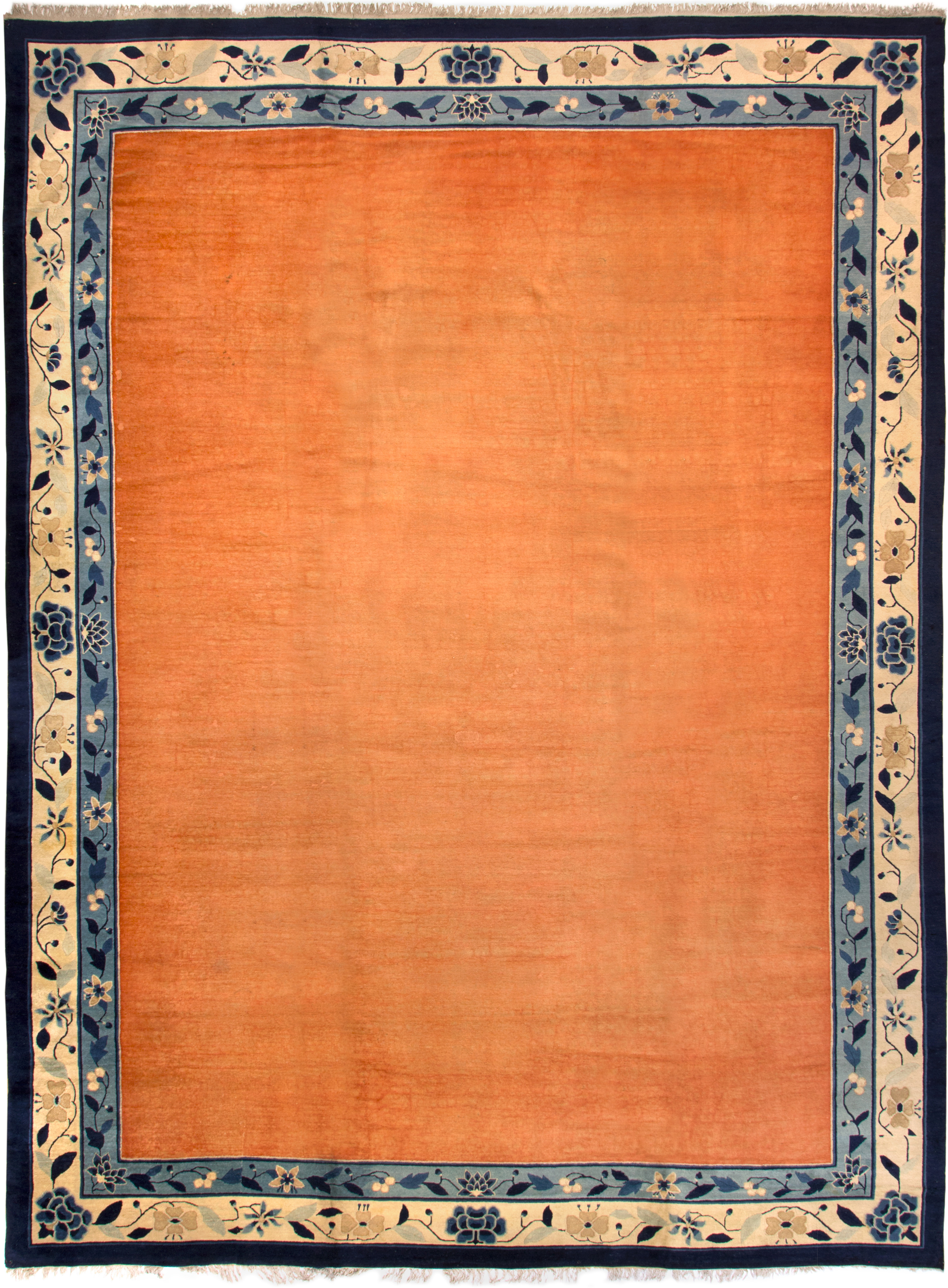 Around 1900 more big sizes were produced on request of the West. But slowly by slowly, the mass production would put an end to the refinement and subtlety. Fifty years later one can say that the Chinese rug production had completely lost its identity. It had no message to deliver, only technique.