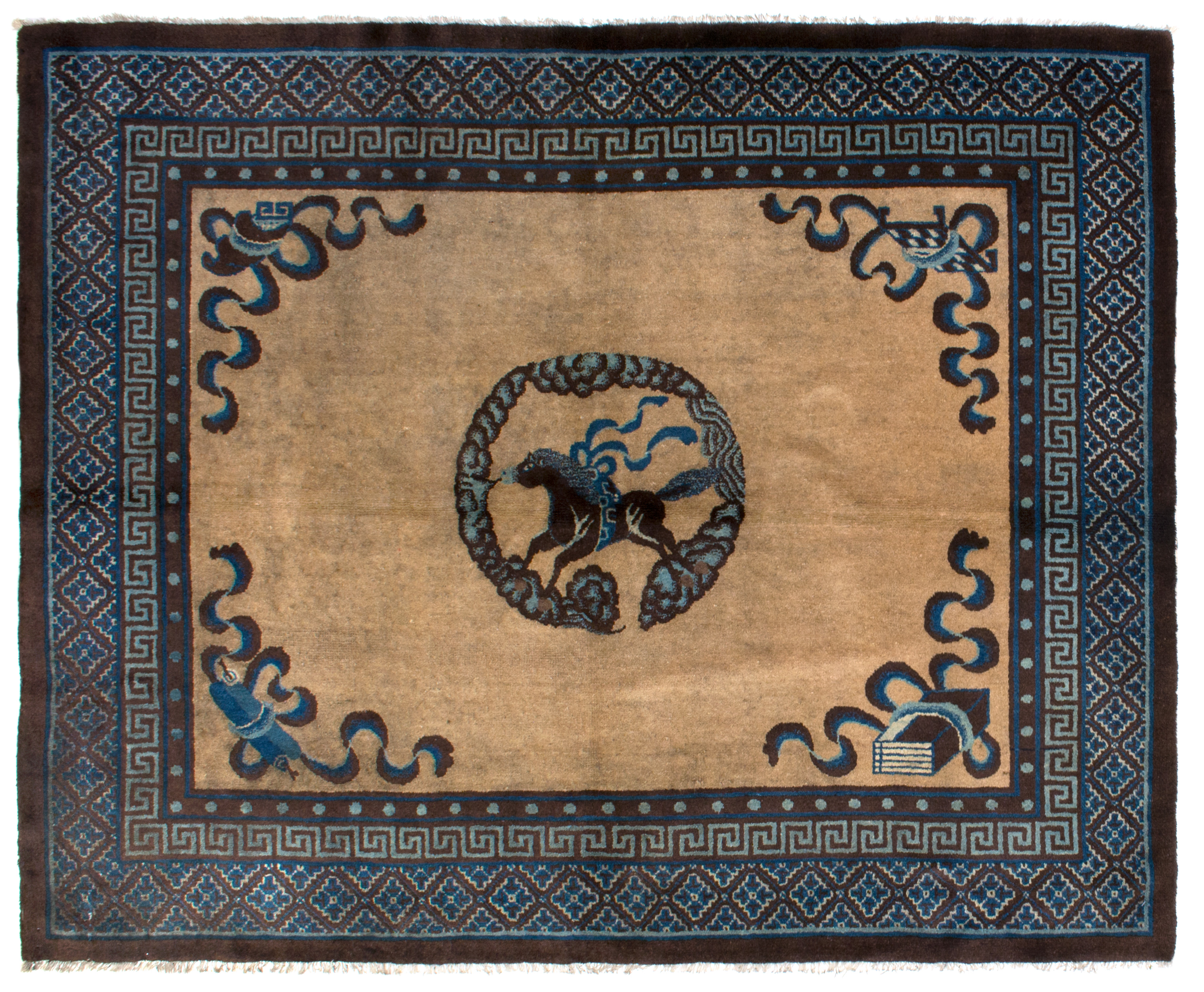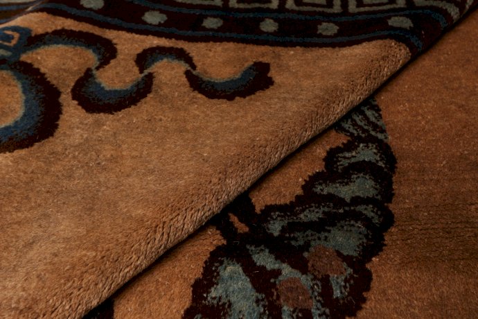 Around 1900 more big sizes were produced on request of the West. But slowly by slowly, the mass production would put an end to the refinement and subtlety. Fifty years later one can say that the Chinese rug production had completely lost its identity. It had no message to deliver, only technique.