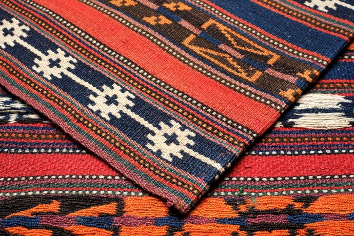Jajims were traditionally woven on horizontal looms, nowadays they are also made on vertical looms.