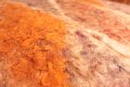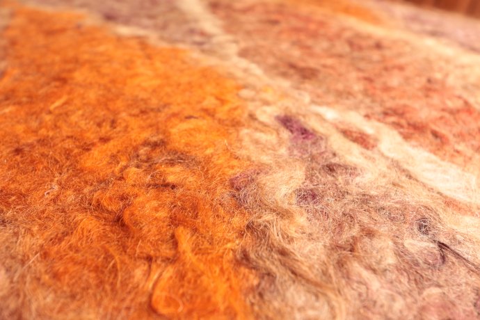 Felt is a layer of wool fibres, wet with water as a lubricant, sometimes with some soap. It is crushed together by repeated compression.