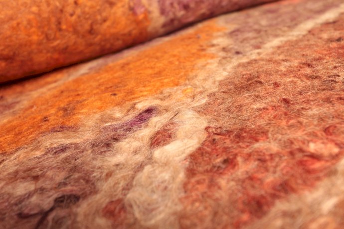 The frequent use of felt is undoubtedly due to its simple method of production and its flexibility. It can be modelled into reasonably stiff, utilitarian purposes such as making hats and boots, as well as into thin sheets that can be used, for example, as rugs or to cover nomadic tents. Patterns and colours can be integrated during the rolling process or later pieces from different sheets of various colours are sewn together.