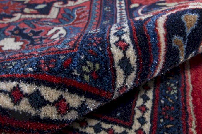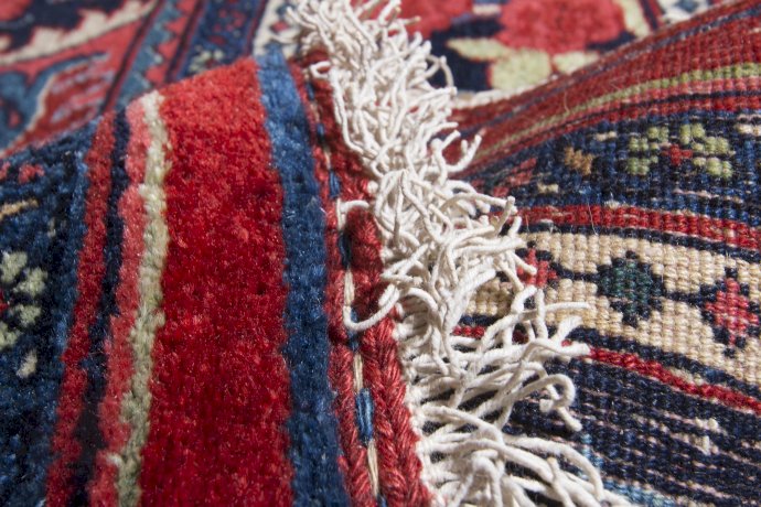 Bidjar is a small city in the heart of the Persian province of Kurdistan at about 200 km from Hamadan. The carpet production extends towards neighboring villages. Even though one of the features of knotting on a woolen warp is the fluffy feeling, these Bidjars are heavy and hardwearing. This is because while knotting these carpets, the weavers constantly beat the row of knots with a heavy metal comb.