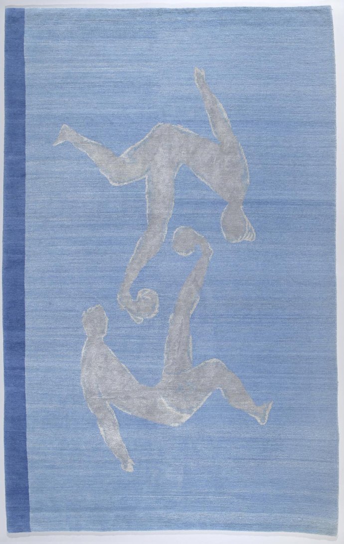 This carpet was designed on the occasion of the 85th anniversary of the Vrouyr company. It was produced in Stephanie Odegard's workshops. The carpets are sold to benefit Rugmark. This organization certifies the absence of child labor and ensures proper social conditions during production. For N. Vrouyr's anniversary celebration, several artists including Ysbrant, Philip Aguirre, Tina Gillen, Narcisse Tordoir, Carla Arocha, and Ives Maes exceptionally designed carpets.