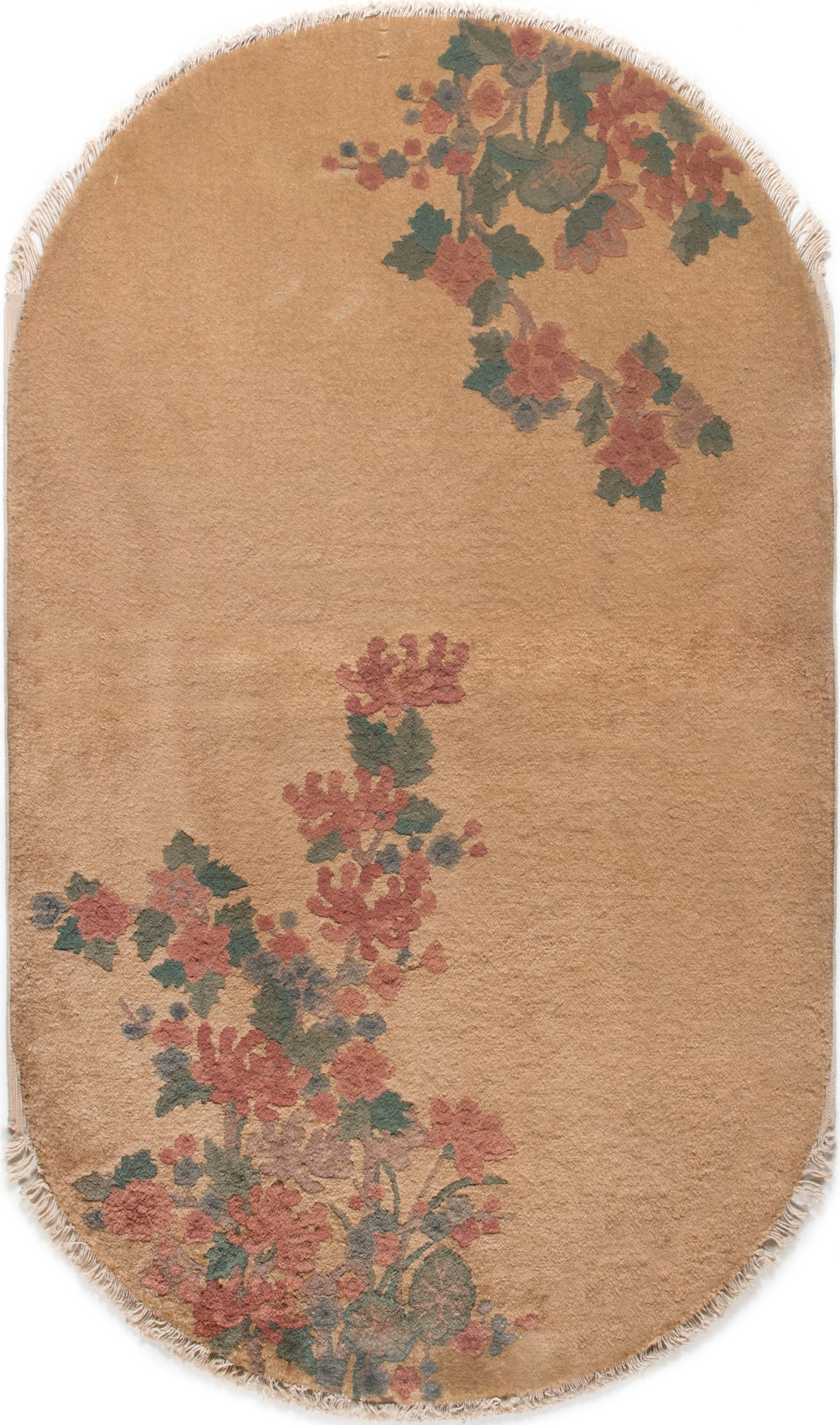 En comparaison avec l’Asie centrale et la Perse l’art du tapis s’est développé relativement tard en Chine. C’est de la fin du 17ème ou début 18ème que datent les pièces importantes dont le décor se retrouve sur la porcelaine de cette époque. Une identification précise des villes d’origine est chose difficile si le chercheur ne dispose pas de documents. Contrairement à la Perse ou l’Empire Ottoman, et malgré l’étendue du territoire, la technique régulière et uniforme ne donne que peu de clés. De même qu’on n’y retrouve pas la variété et la complexité des tons et de motifs il est clair que c’est un art qui a été régi par des règles ou des recommandations précises.