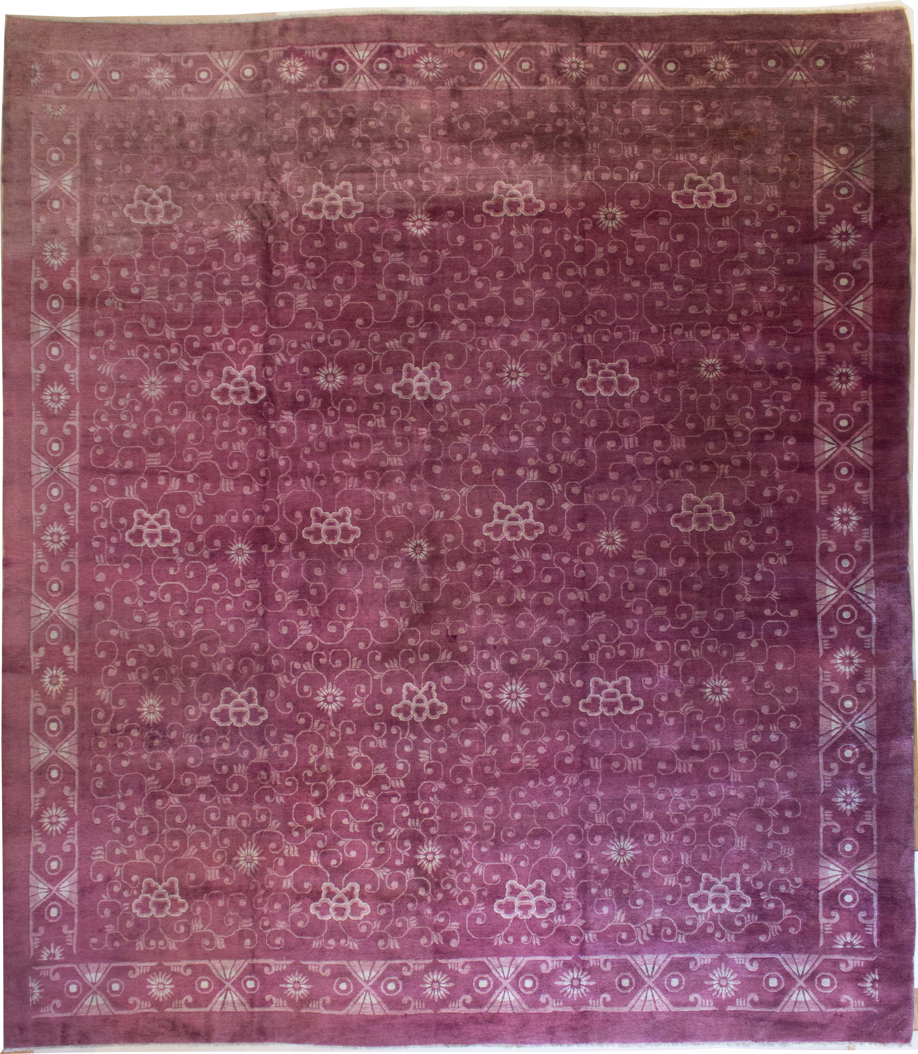 De tapijtknoopkunst, en daarmee bedoelen we niet huisvlijt maar het vervaardigen van grote tapijten is in China eerder laat ontstaan in vergelijking met b.v. Perzië, d.w.z. vermoedelijk op het einde van de 17de eeuw of het begin van de 18de eeuw. De stijl van deze stukken was ook diegene die men ziet op het aardewerk van die tijd. De datering en identificatie per streek is voor Chinese tapijten zeer moeilijk. Ondanks de grote uitgestrektheid van het grondgebied, is er een opmerkelijke uniformiteit van techniek, manier van knopen, gebruik van verfstoffen, enz. De Chinese wereld van de kunst geeft eerder een beeld van eenheid.