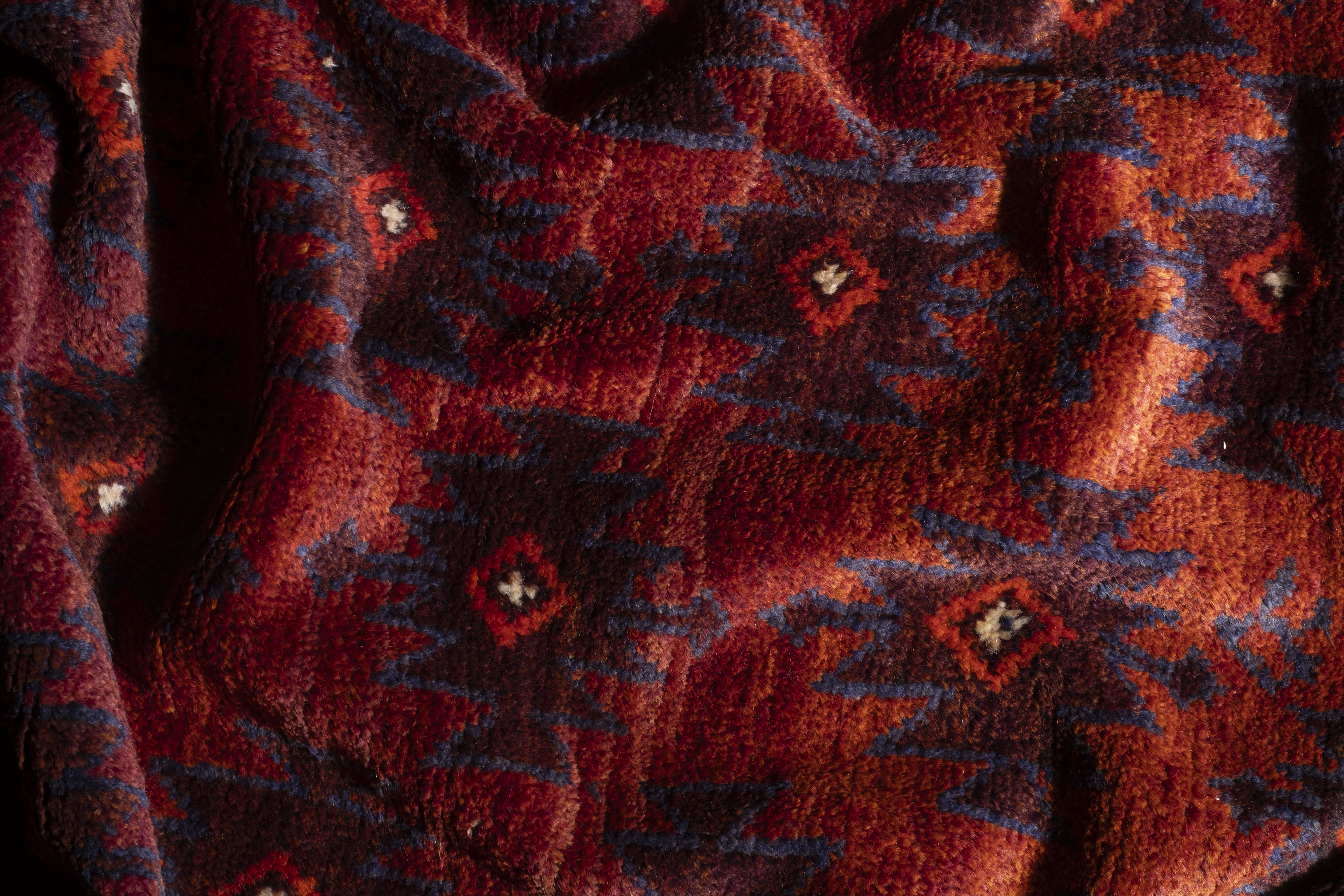 De tapijten uit Afghanistan waren oorspronkelijk overwegend variaties op eenzelfde thema van tal van rode schakeringen met voornamelijk zwarte motieven. Deze kleuren (in zo ver natuurlijke kleurstoffen werden gebruikt) veranderden stilaan in roestbruin en warme terracotta. De motieven waren zeer sober en toch aantrekkelijk voor wie een oog had voor tapijtknoopkunst.
